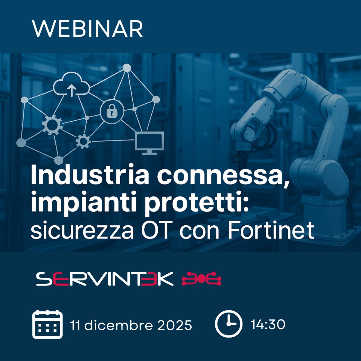 Giovedì 11 dicembre alle 14.30 ci sarà un seminario on-line gratuito dove scoprire le soluzioni di Fortinet per la sicurezza dei sistemi OT e IOT.